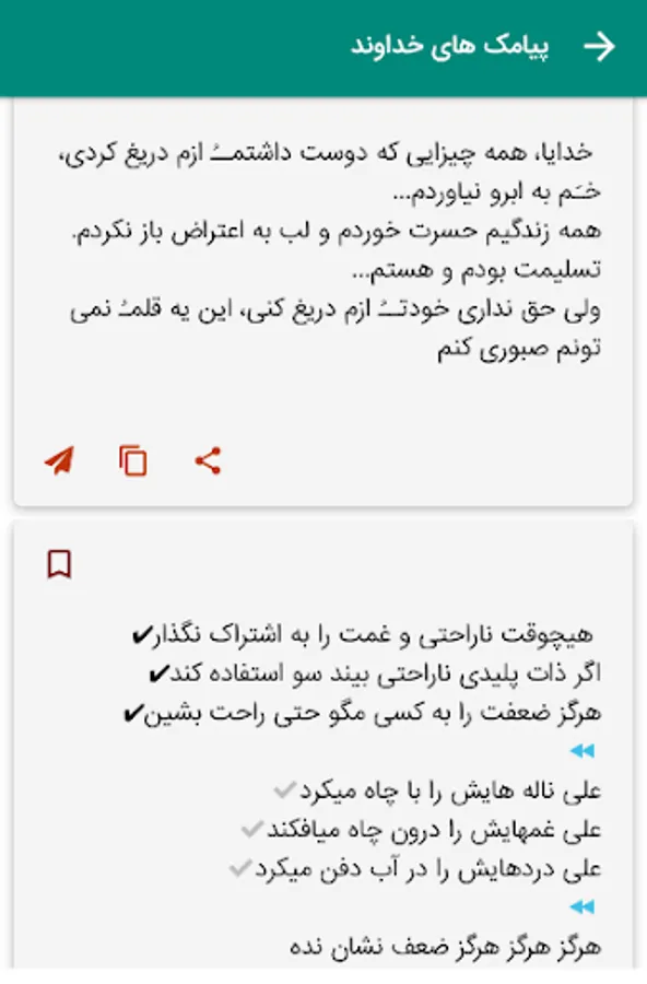 Everyone has a lot to say to their God, but sometimes for some reason they can not feel sorry for God Almighty as they should. The same God who loves all his creatures and love has given love to all his servants, because the presence of the great God in the life of each of us human beings is a relief for all our needs and pains. If you want to read soothing and beautiful sentences about God's incomparable gifts, read the pure and comforting sentences of this part of the application and enjoy, and also send encouragement and comfort to those around you.