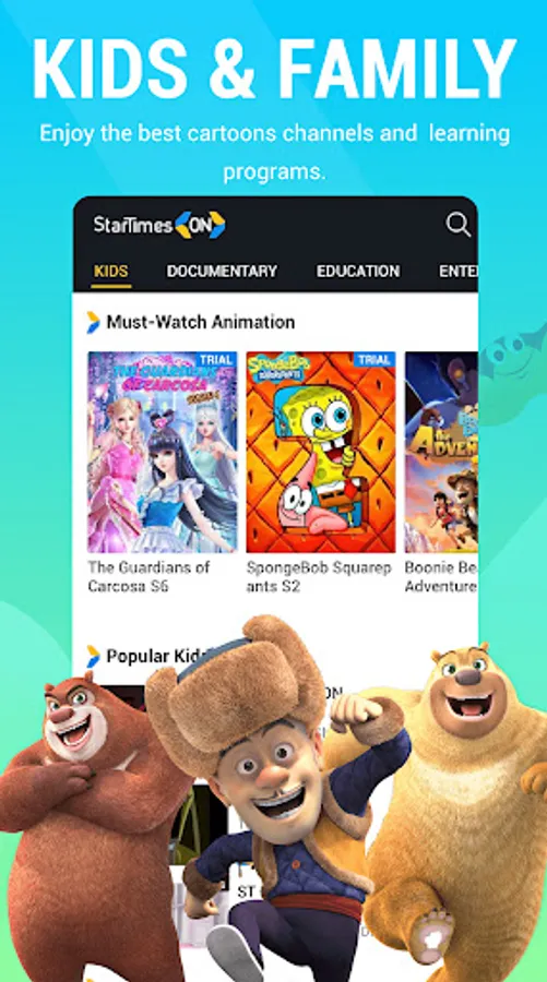 • Enjoy a safe watching experience just for children with family-friendly entertainment.