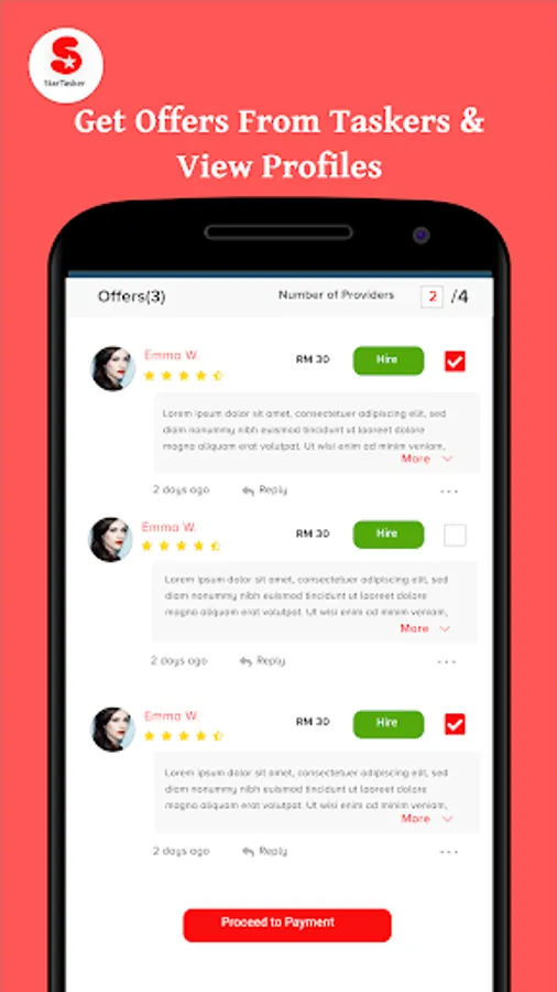 - Get multiple offers from taskers that’s right for you