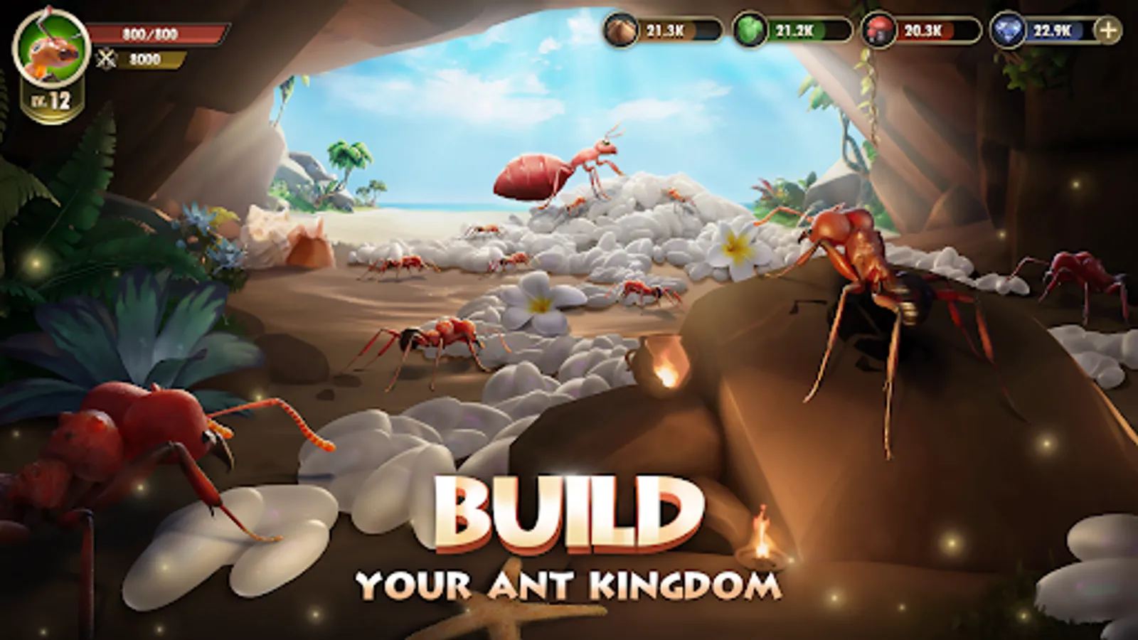 In The Ants: Underground Kingdom, you are the ultimate Ant Ruler to lead the Queen, build your Anthill, grow the colony, and defend against enemies. To survive and reproduce, wars between animals take place frequently in nature. For the glory and prosperity of your ant empire, you must show your own strategies and resourcefulness.