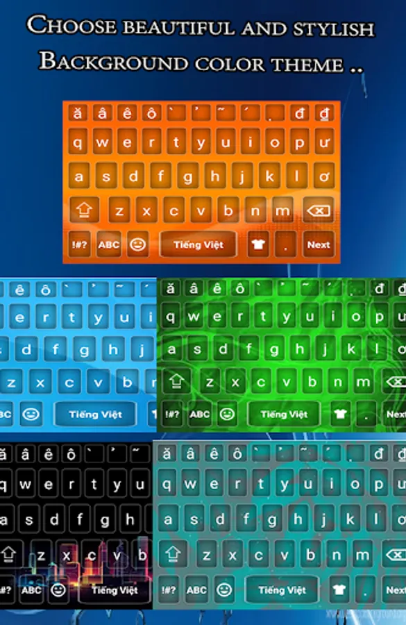 1000+ new emotions emoji’s such as love emoji, heart emoji, happy faces and many more in Vietnamese Keyboard free by which you can share your emotions with your love ones. Fast typing keyboard with Vietnamese alphabets and words in Vietnamese keyboard. You can send your emails, messages and post a comments in Vietnamese and English language at same time by using this Fast Vietnamese Typing Keyboard. There is no need to copy and paste Vietnamese words in this beautiful and stylish Vietnamese Keyboard with English language😛.