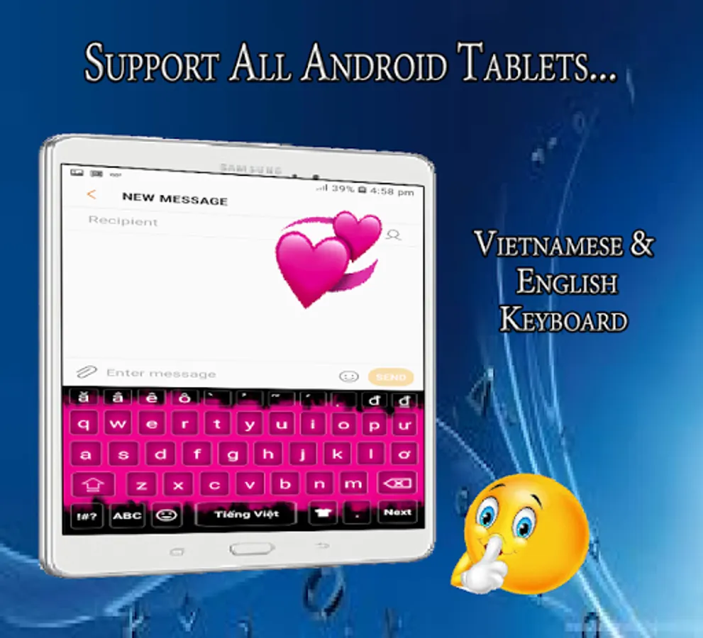 So download this fast and easy Vietnamese Keyboard for android to make your typing easier. Vietnamese Language Keyboard with English have a lots of beautiful background themes which make your mobile stylish in look. Vietnamese Keyboard with English is a stylish and fast typing keyboard. This app is specially designed for Vietnamese people who speak Vietnamese Language. Use both Vietnamese and English in Vietnamese Language Keyboard Laban Key. This Vietnamese Language app is efficient and fast in use. This beautiful Vietnamese Keyboard Laban Key have an amazing and beautiful color keyboard themes and emoji’s. Download Vietnamese Keyboard App and give us your comments and feedback to help us make Vietnamese and English Keyboard app more efficient and competent for you. If you Like Vietnamese Keyboard App then please "Rate US"😊.