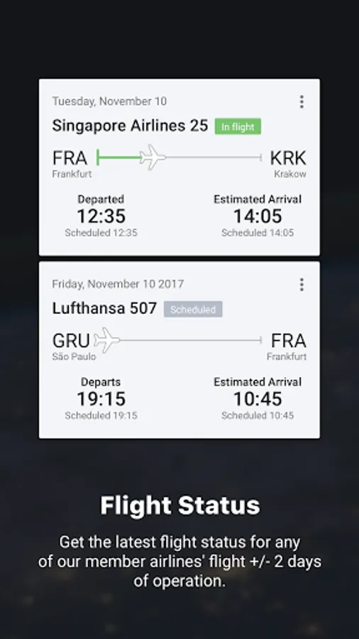 The Star Alliance App is your mobile companion in support of the Star Alliance experience. It provides comprehensive alliance-wide flight information and schedules, worldwide lounge locations and details, as well as airport information.
