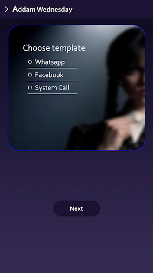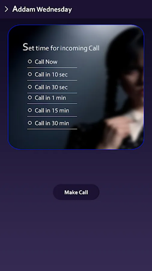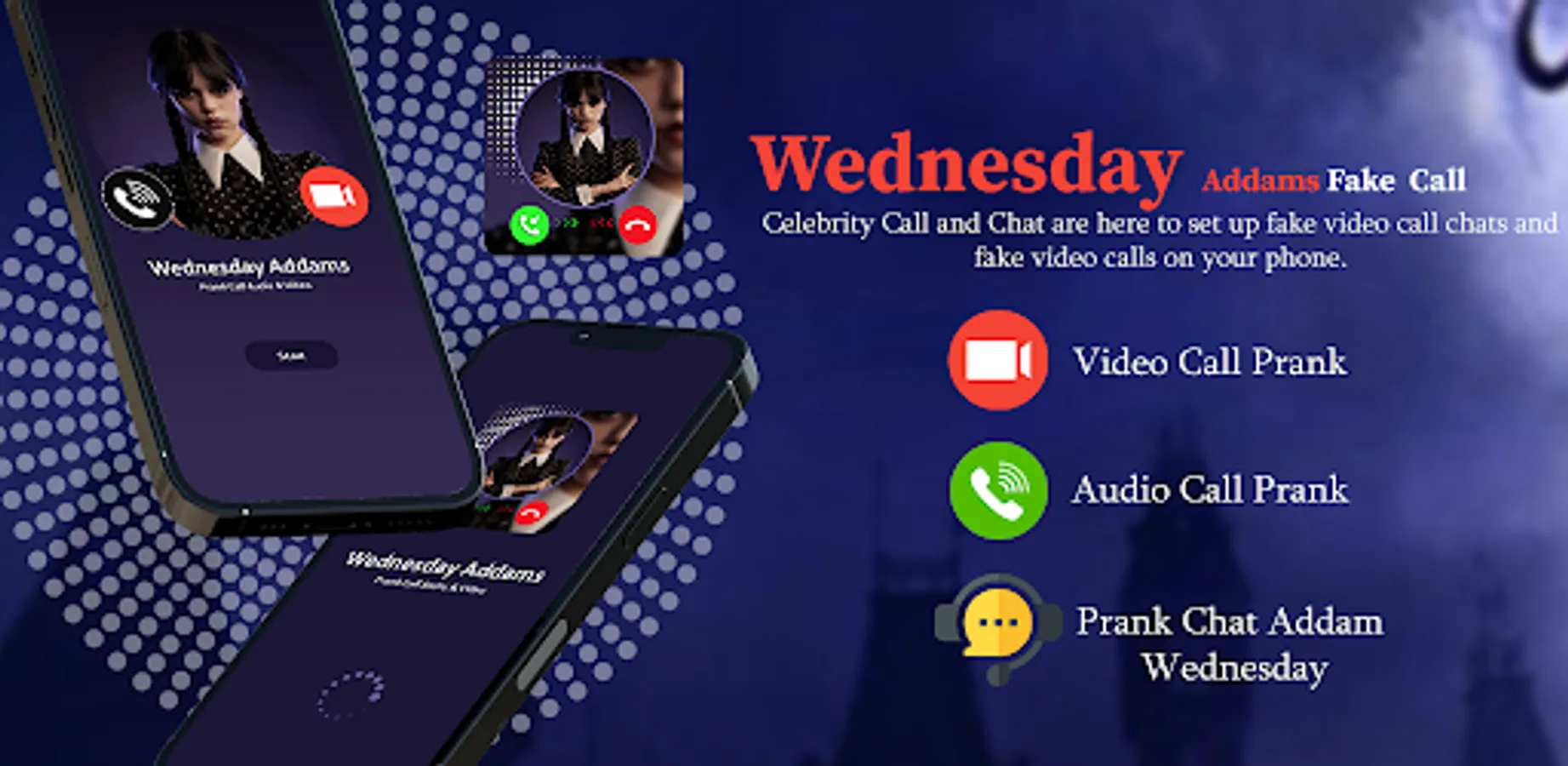 Wednesday Addams prank Call to prank your friends with video chat and Voice Prank Call On the phone screen.