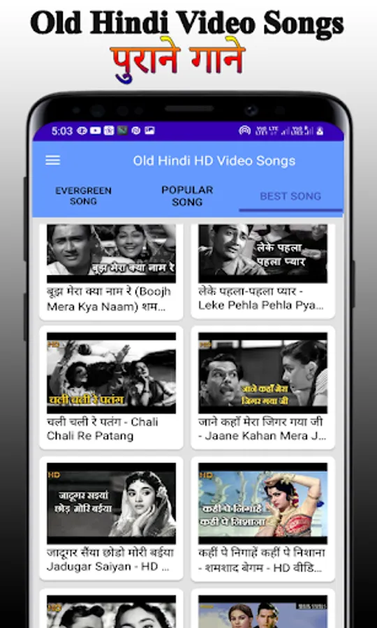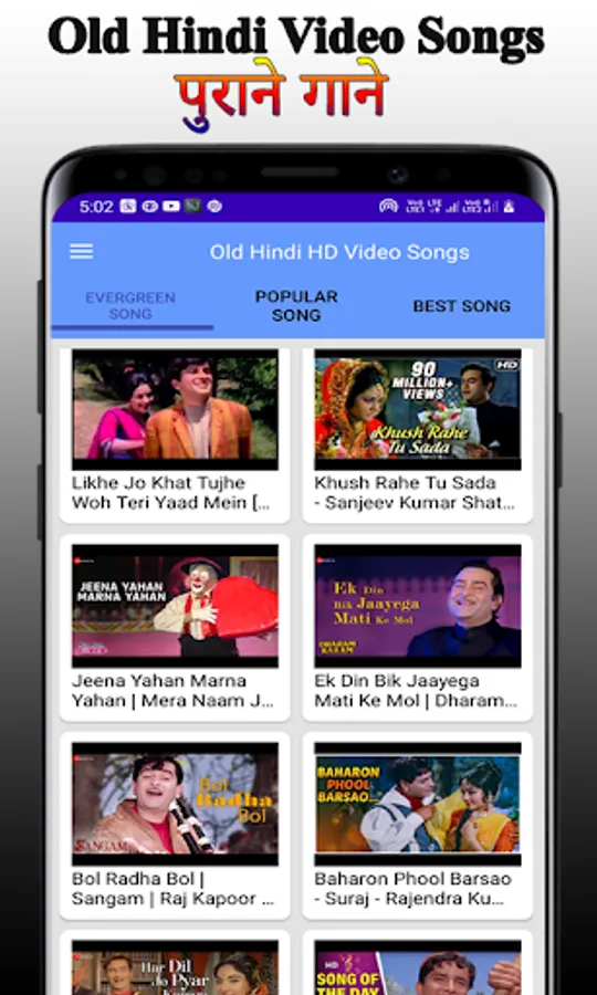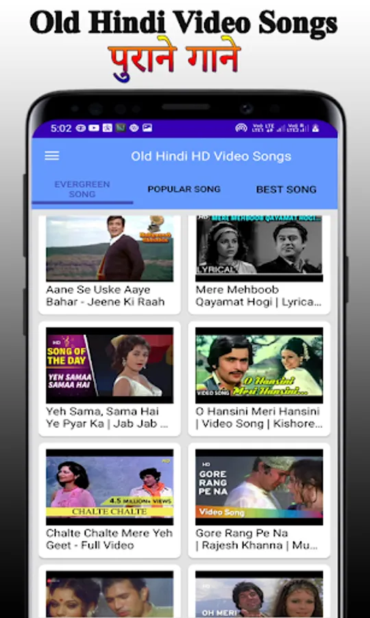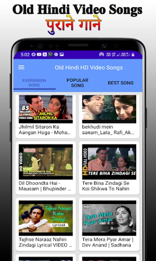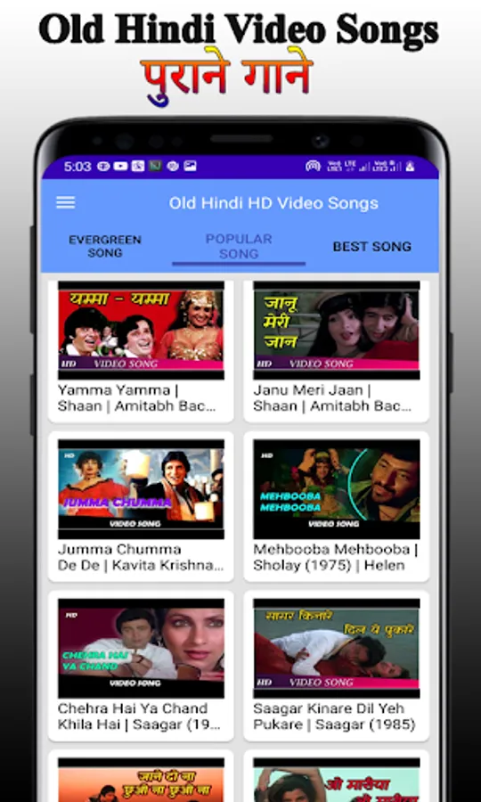 This application has largest collection all category videos like Best of Dharmendra, Best of Hema Malini Songs, Best of Shammi Kapoor, Best of Amitabh Bachchan, Best of Dilip Kumar, Rajesh Khanna Hit Songs, Sanjeev Kumar Best Songs, Raj Kumar Super Hit Songs, Dev Anand Evergreen Songs, Rishi Kappor Best Songs, Ashok Kumar Hits, Jeetendra Super Hit Video Songs, Vinod Khanna Songs, Nargis Best Video Songs, Madhubala Hit Songs, Vyjayanthimala Old Songs, Meena Kumari Evergreen Songs, Nutan Hits Songs, Rekha Hits Video, Aasha Parekh Best Songs, Mumtaz Best Hindi Songs and many more.