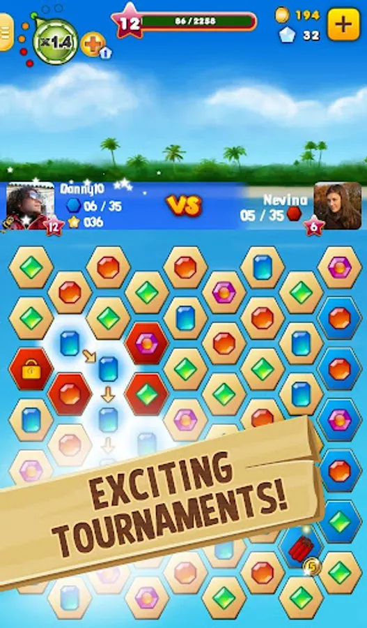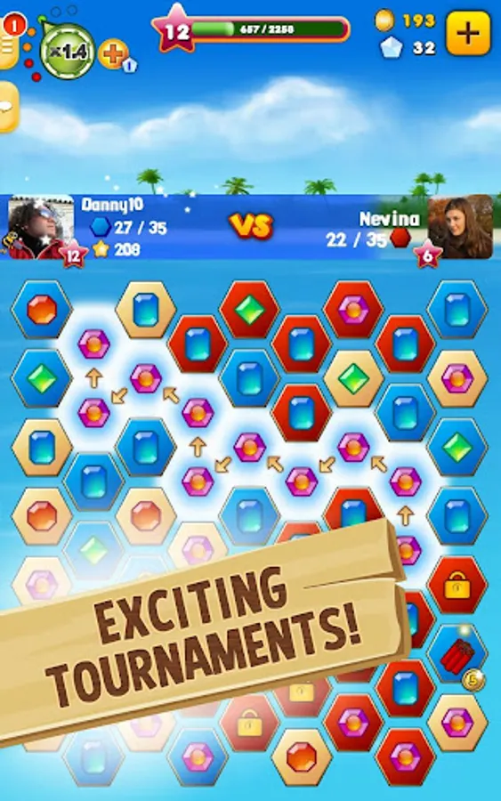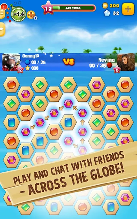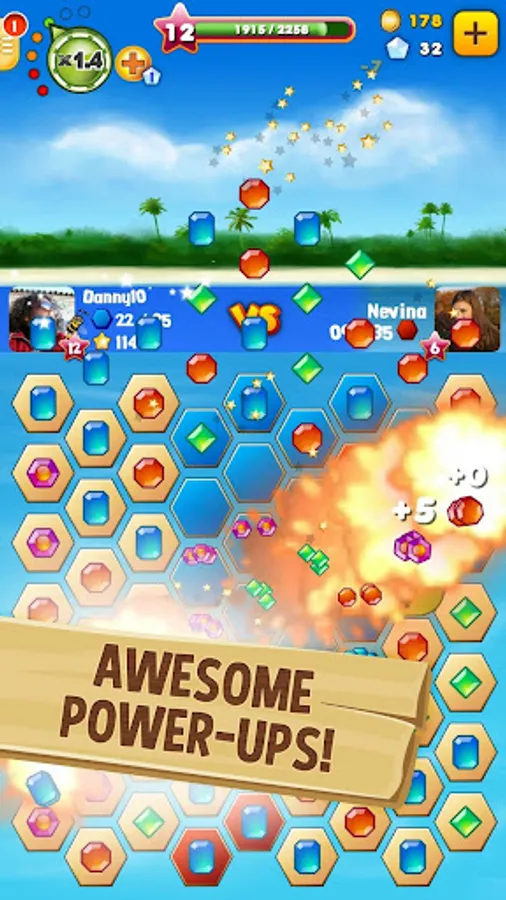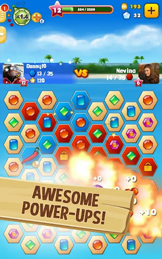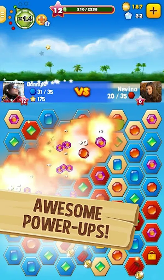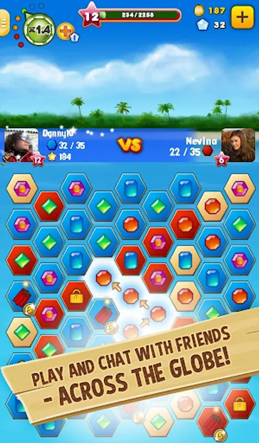 In Diamonds Paradise your goal is to beat your opponent by taking over the game area by chaining diamonds. Game is played in turns against live opponents! Use bombs and other special items to help your quest. Open mystery boxes to reveal secret prizes. Earn diamonds by clearing achievements and join tournaments to win great prizes!