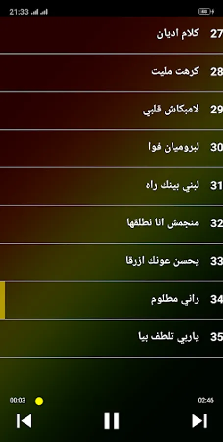The application contains 35 beautiful songs by Cheb Hosni, the Algerian singer Cheb Hosni Rai Algerie 1990 + 1980