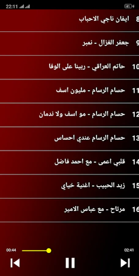 The application contains the most beautiful songs that we have chosen from among 100 famous songs, romantic songs, sad songs, songs of love and reproach, debates, Iraqi sadness, and also quiet songs, love songs and youth songs by Iraqi artists such as: