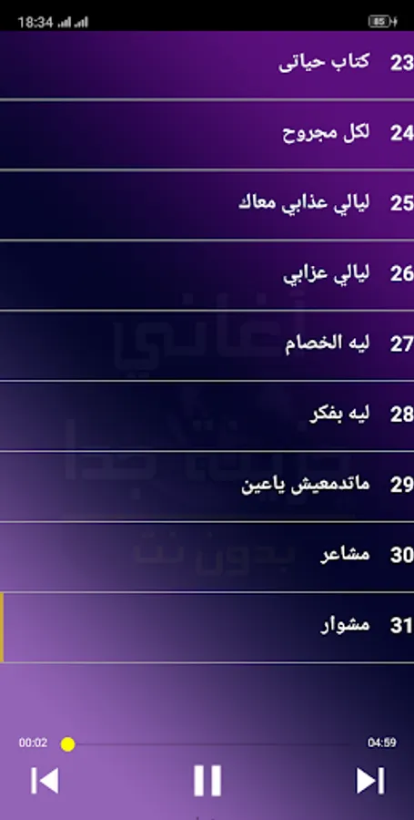 The application contains the most beautiful 31 very sad Arabic songs, arani hazina 2023, in addition to songs