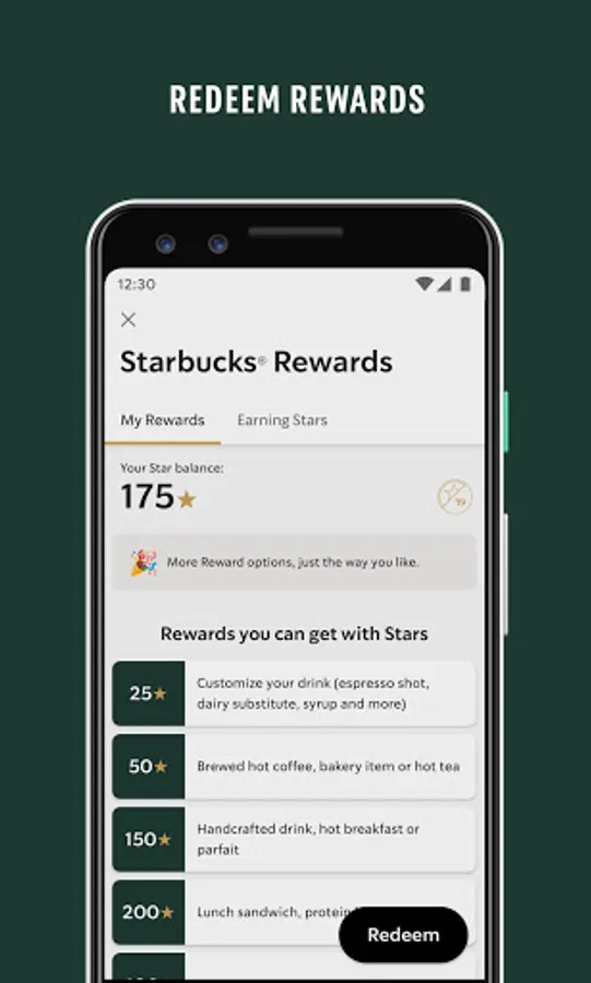 Join Starbucks® Rewards and unlock exclusive benefits while earning Stars with almost every purchase. Redeem Stars for free drinks, food and more. Starbucks® Rewards members can look forward to a birthday treat plus complimentary coffee and tea refills.*