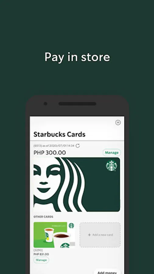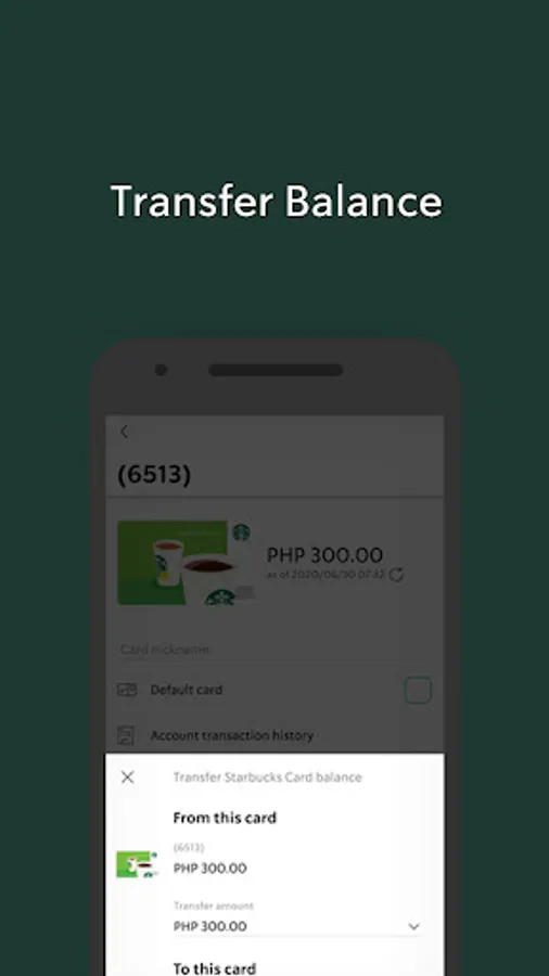 Check your Starbucks Card balance, add money, view past purchases and transfer balances between cards.