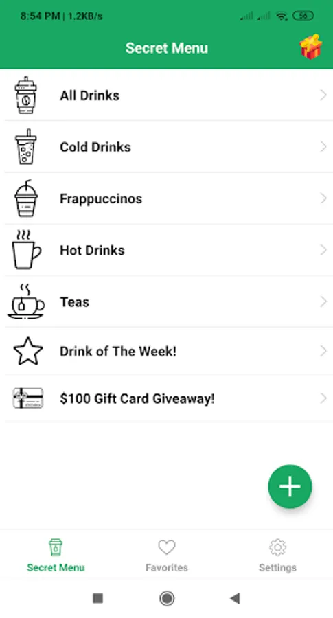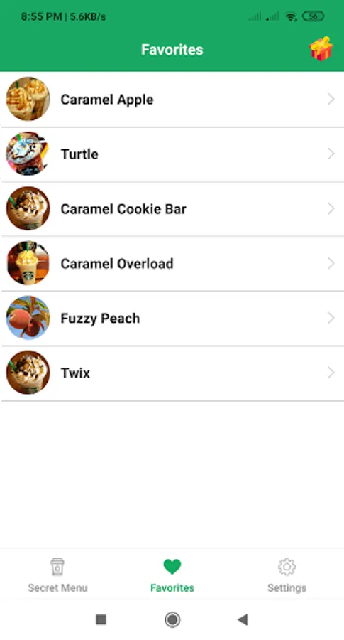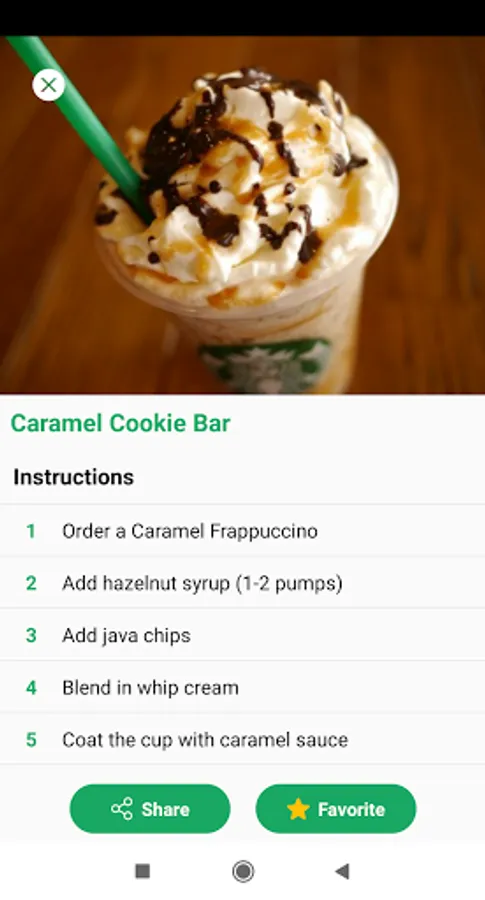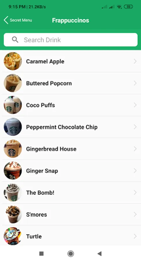 Lots of Starbucks secret drinks available on just one tap. This app has Grasshopper Frappuccino, Cookie Dough , Fuzzy Peach TeaFrappuccino, The Red Starburst , The Mermaid Frappuccino and many more