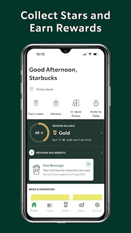 The Starbucks® TH app is a convenient way to pay in store or skip the line and order ahead. Rewards are built right in, so you’ll collect Stars with every purchase, and start earning free drinks.