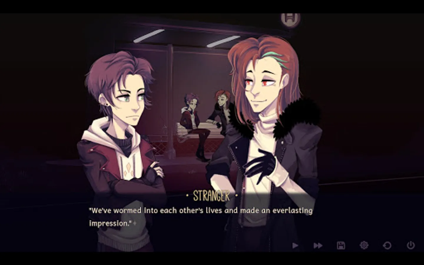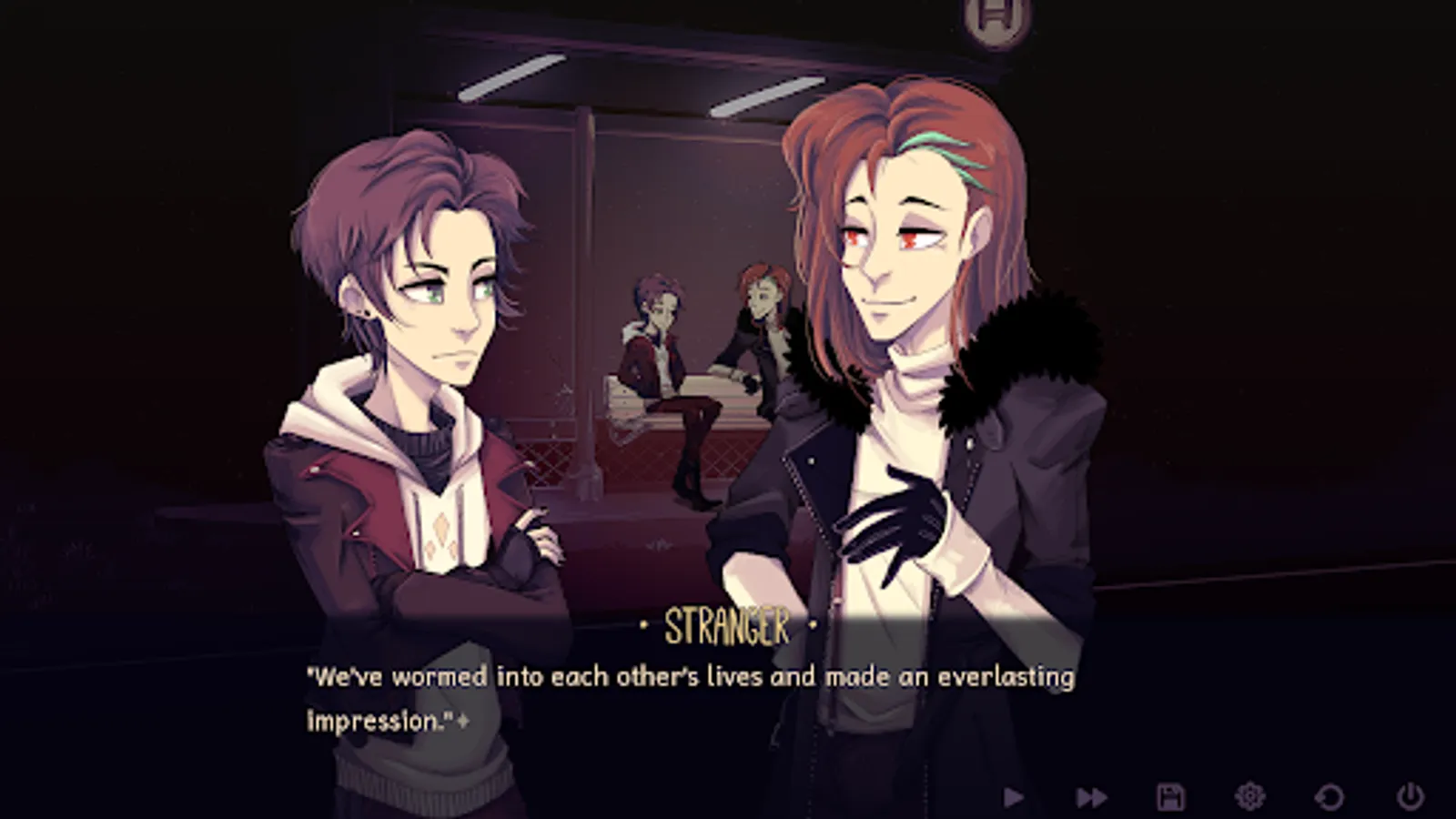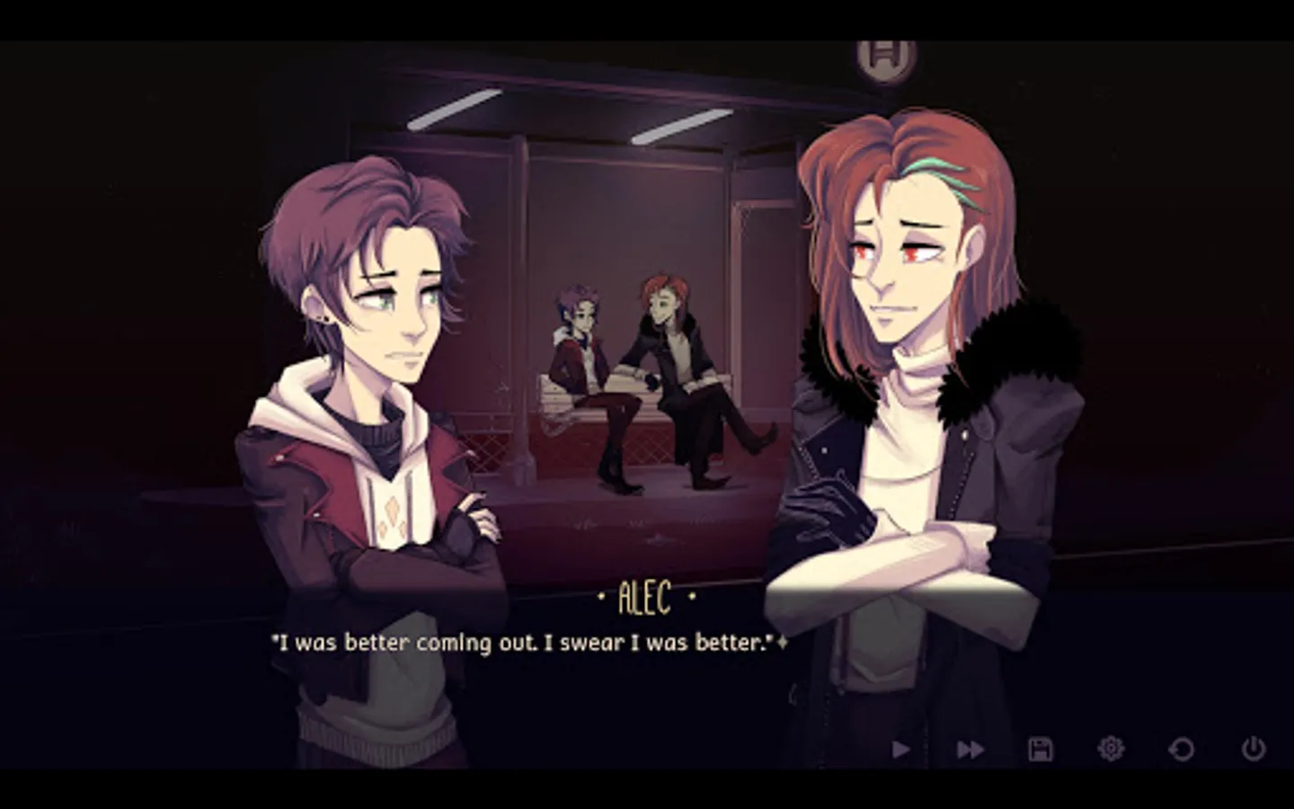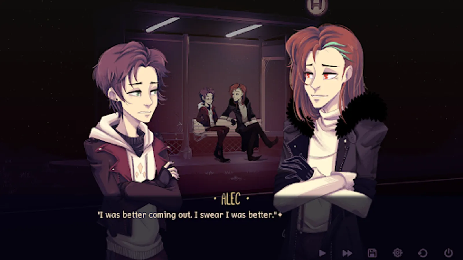 Alec has two choices before him. Ignore the stranger's attempts to converse (he could be a serial killer, after all) and wait for the bus, or engage him (what else is there to do stranded at a bus stop) and see what happens.