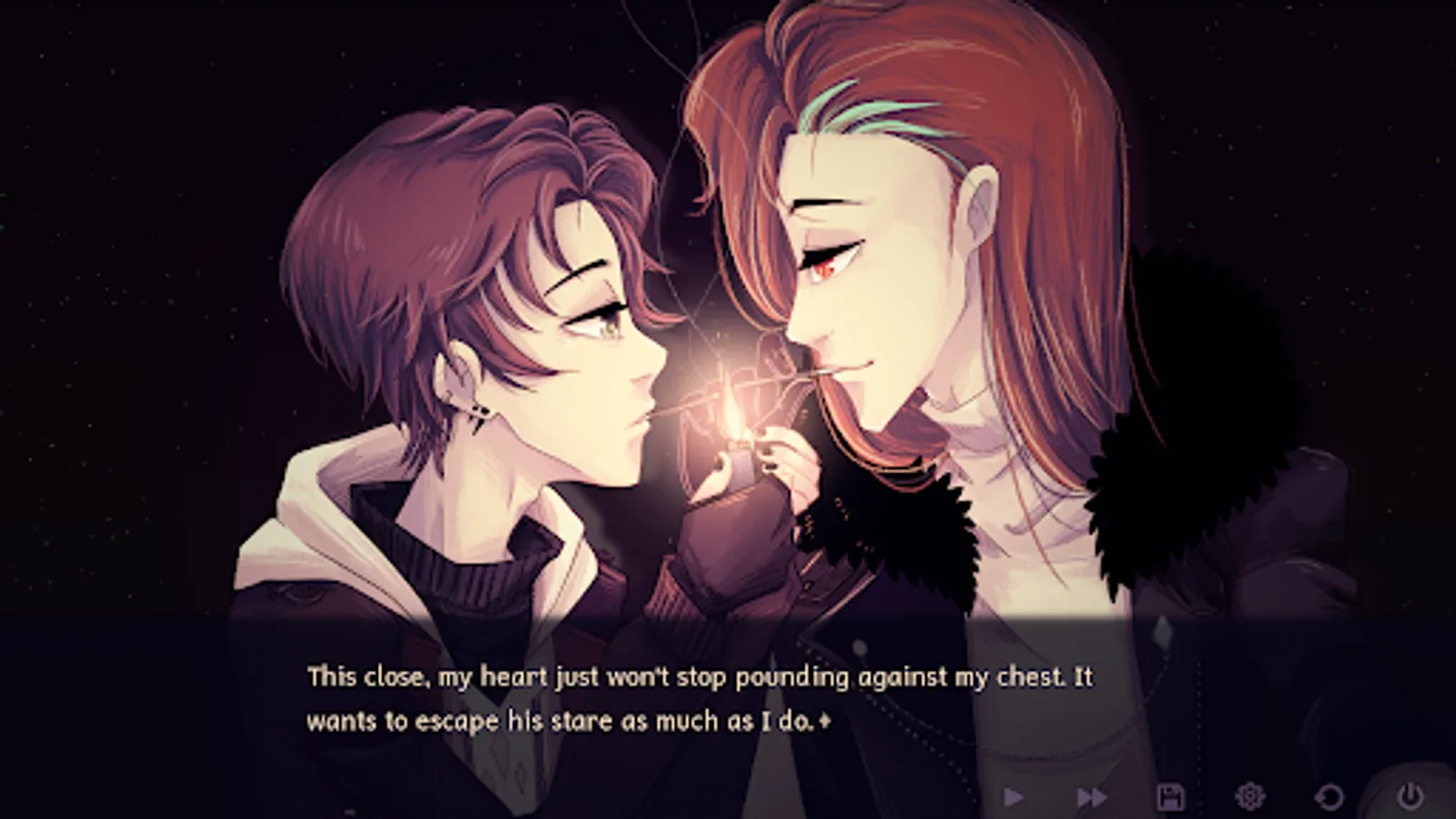 The Morning Star is a short Boys' Love Visual Novel featuring 10,000 words of moving story, gorgeous hand-drawn graphics with 11 full illustrations, and 3 endings with various changes depending on what Alec has found out about his circumstances.