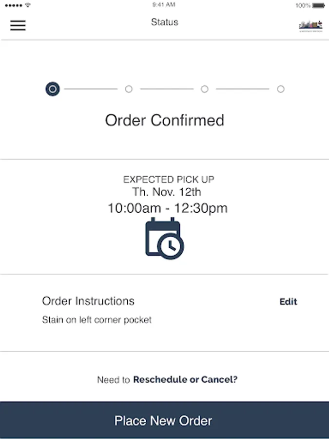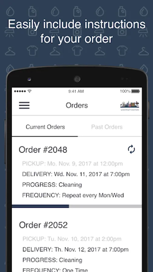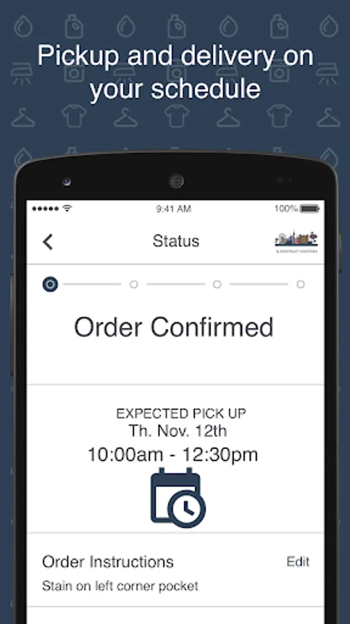 See dry cleaning services and pricing. Schedule pick ups/deliveries, pay on the app with credit card, see current and previous orders.