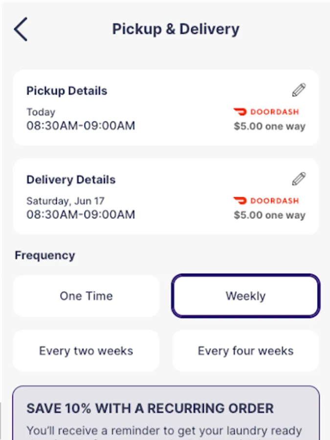 Your clothes will be delivered at your door clean, folded and ready to wear.