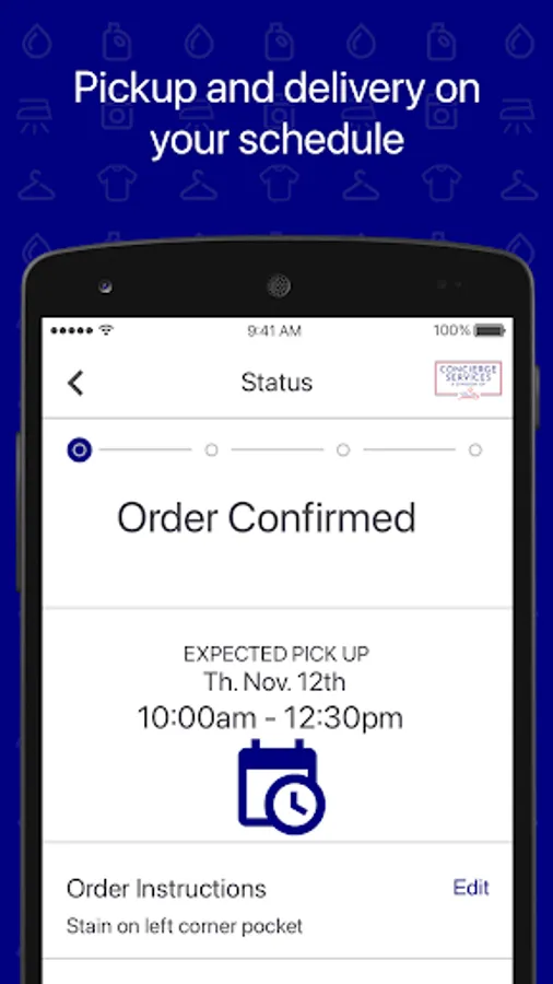 This app maximizes convenience and efficiency in the pick up and delivery of laundry and dry cleaning to your home or office. Simply enter your payment information and enter your order and specify where you would like us to pick up your clothes. Then we'll get to work. While we are in possession of your order, you may text our driver and assembly phone if you'd like to change anything, such as your drop off point. And when your order is ready, we will let you know and deliver it to your location of choice.