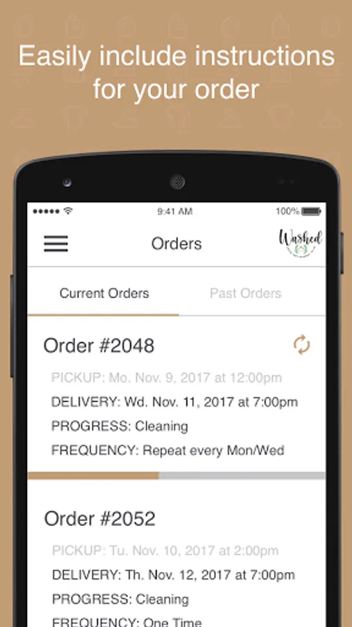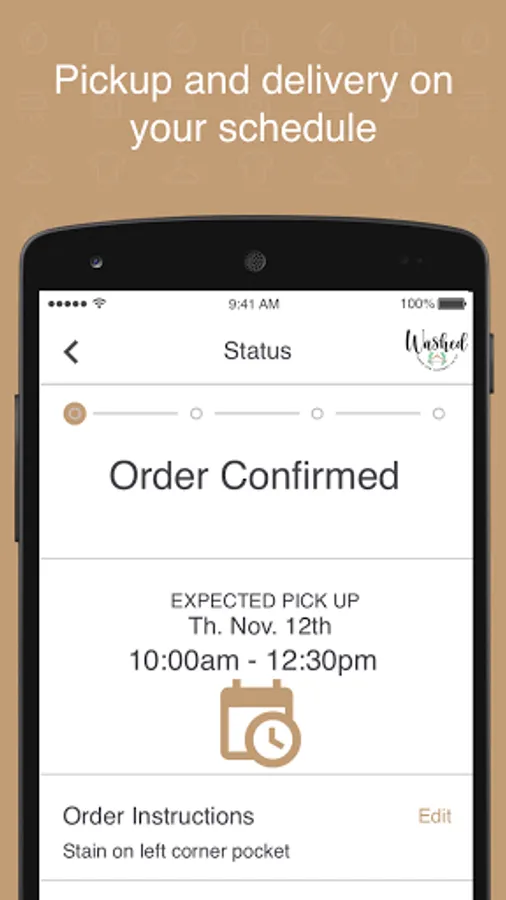 Save time by letting The Washed co deliver the highest quality laundry and dry cleaning service right to your door. Download our app, schedule a pickup, and you're on your way - Washed will handle the rest. You can track your order seamlessly and provide feedback right from the app!