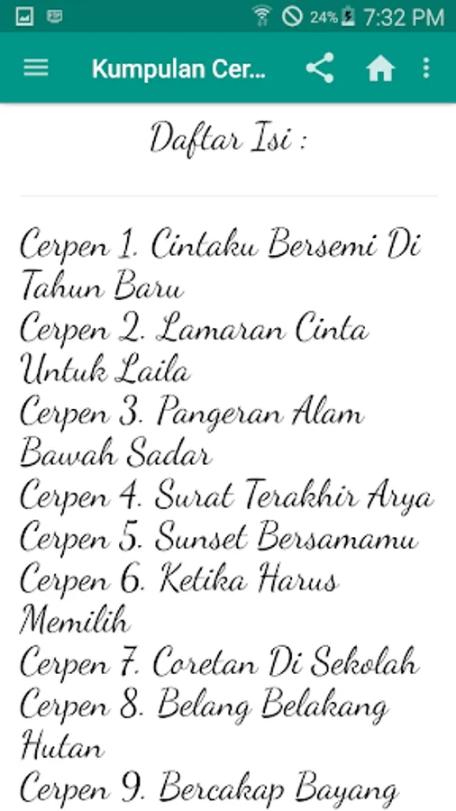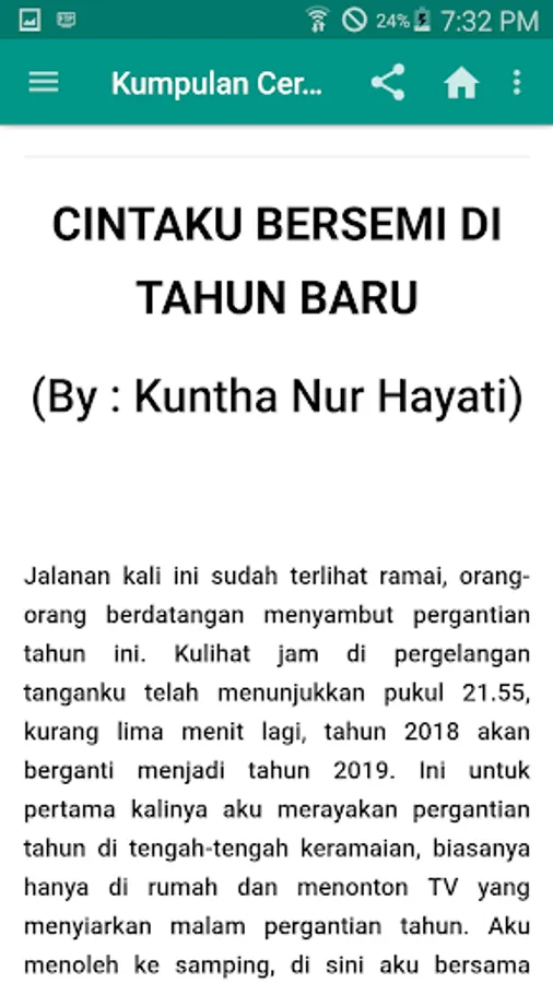 Bored with short stories whose ending hung and made me curious? Tired of reading novels whose pages are really thick? Are you curious to wait for continued serial releases that aren't released? Rather than most think, it's better to read short stories. Moreover, short stories that have the nuances of love and family. Like the 2019 New Short Story Collection that you open. 2019 New Short Story Collection is a collection of short stories that are suitable for teenagers like you. So, what are you waiting for? Immediately download this short story application. After that rate and comment, according to you, which short stories do you like the most and make smiles when reading them. Thanks.