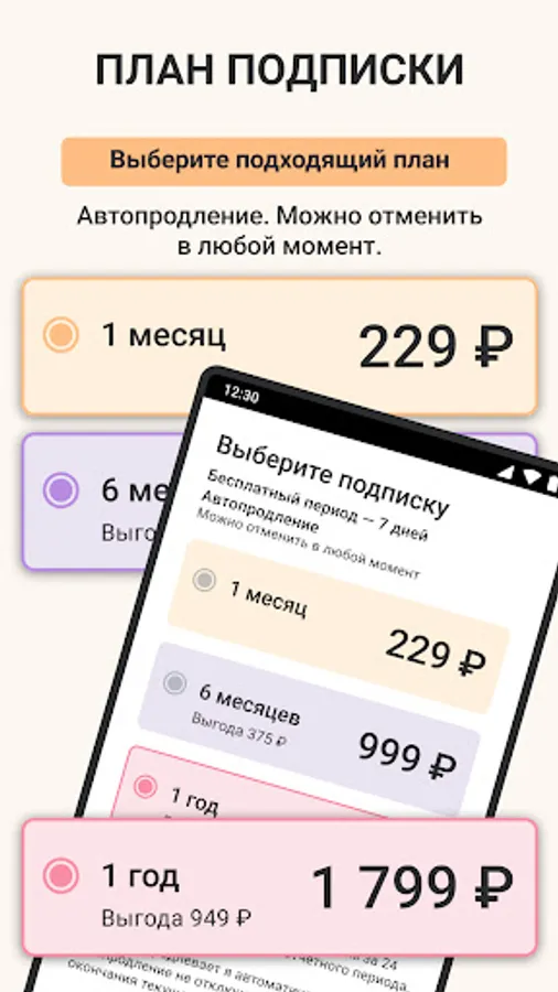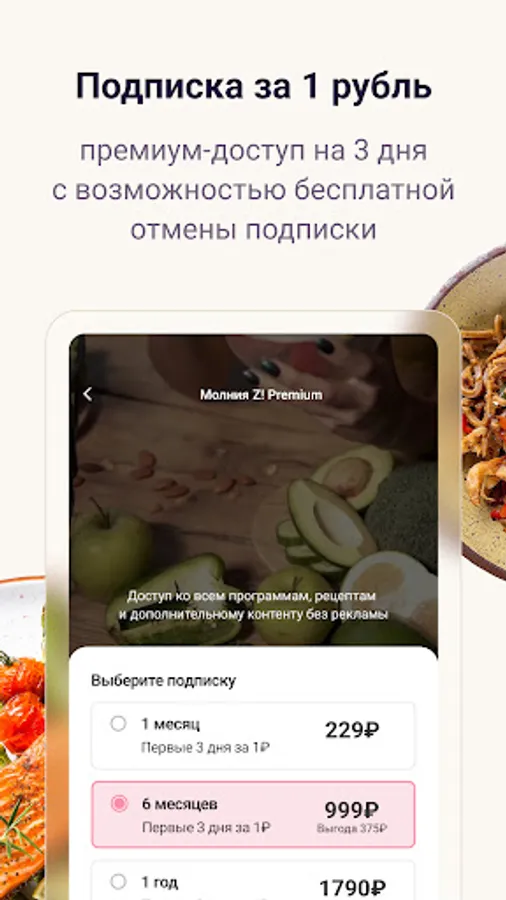 Пробная подписка на 3 дня за 1рубль с Премиальным доступом ко всем функциям приложения.