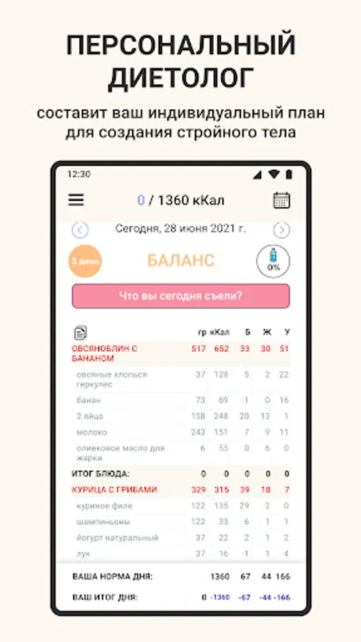- рассчитает до грамма сколько и каких продуктов вам надо съесть