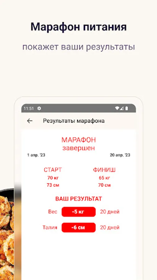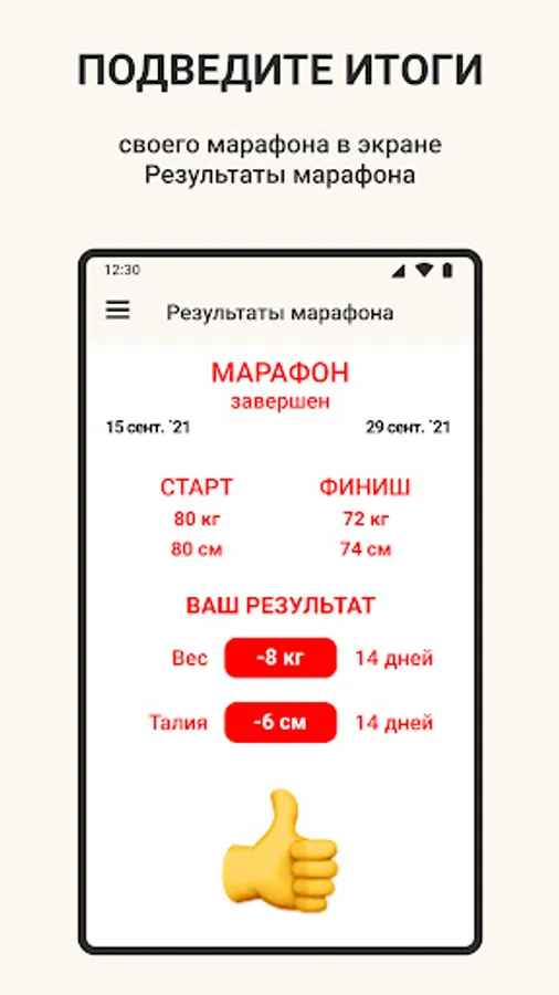 - Вкладка Результаты позволит вам ежедневно видеть динамику изменения вашего веса и талии, чтобы следить как вы меняетесь