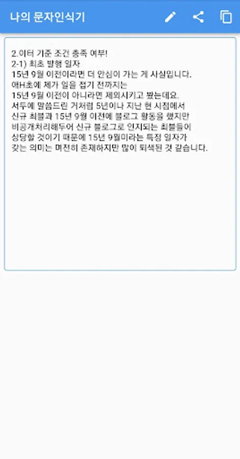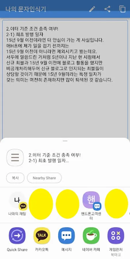 In addition, the extracted text after shooting can be sent to the user via messenger, SMS, or e-mail using the sharing function, or copied to the clipboard.