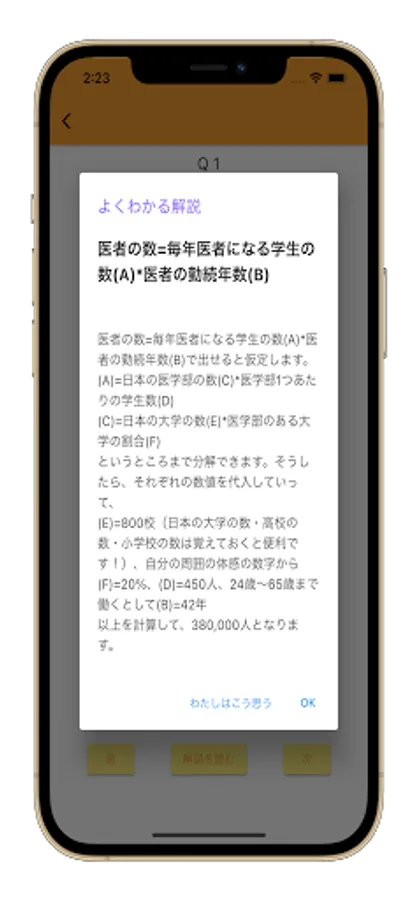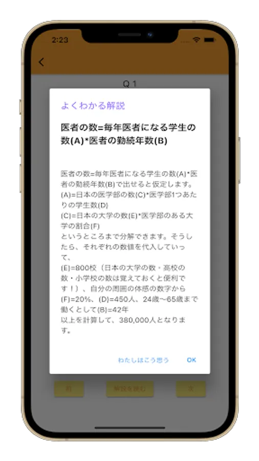 "Fermi estimation considered as a student of the University of Tokyo" is an application that supports learning of Fermi estimation.