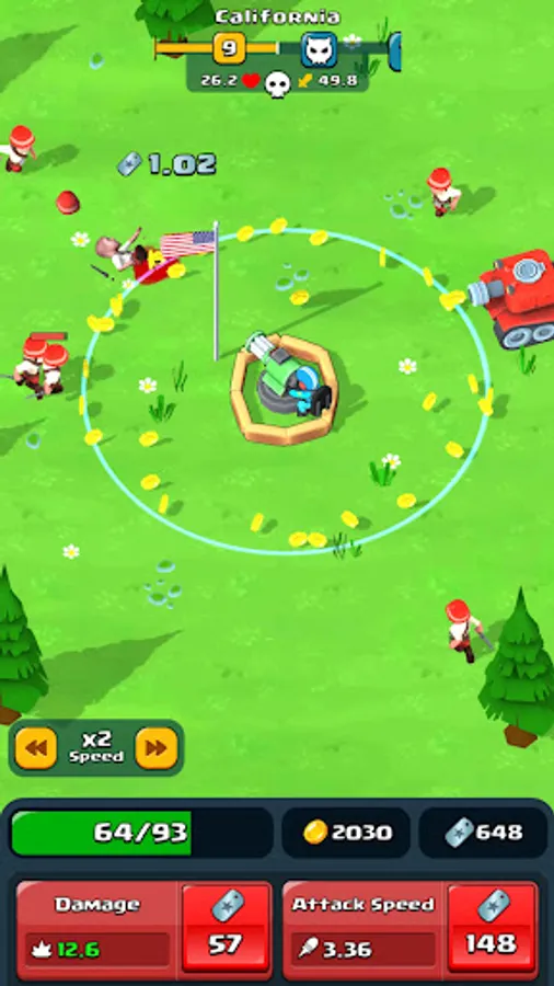 Protect your country from invading forces in Homeland Defense, an exhilarating tower defense RPG with a unique twist! Take control of a powerful gatling gun as you face off against infantry, tanks, and more. Engage in intense battles, strategically selecting from a variety of powerful perks to strengthen your arsenal and overcome challenging boss tanks. It's time to defend your homeland!