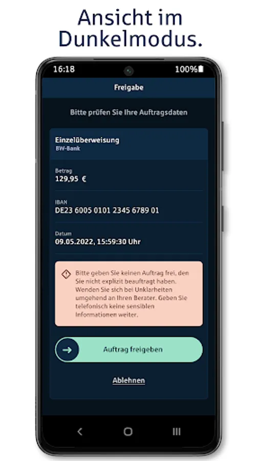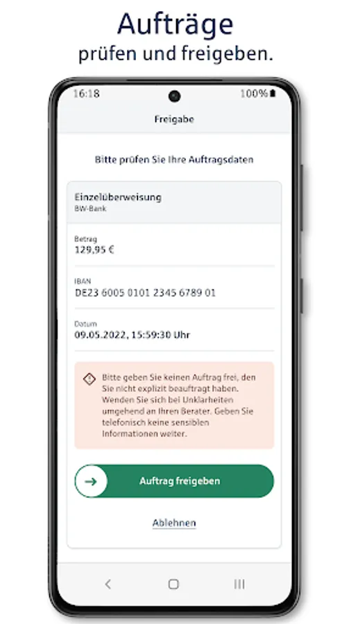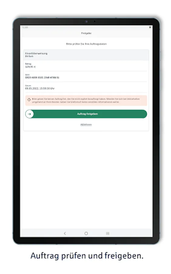 • Approve your payment order – simply by swiping over the “Approval” button, because in most cases there is no need to (manually) enter a TAN in online banking