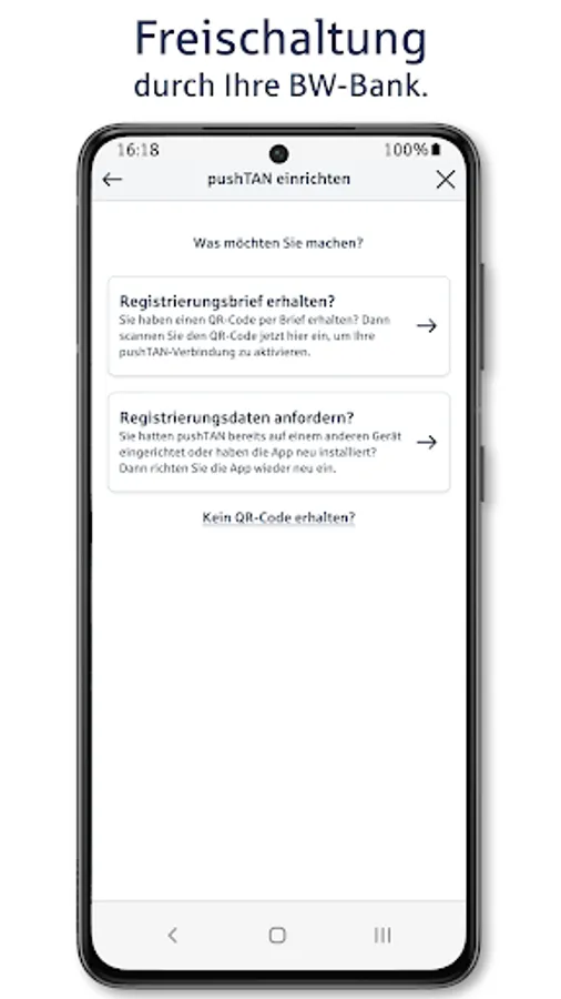 • If your phone or tablet is rooted, BW-pushTAN cannot run on it. The high security standards for mobile banking that are important to us cannot be guaranteed on manipulated end devices.