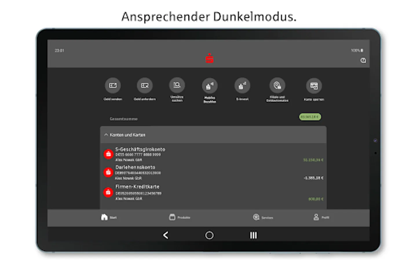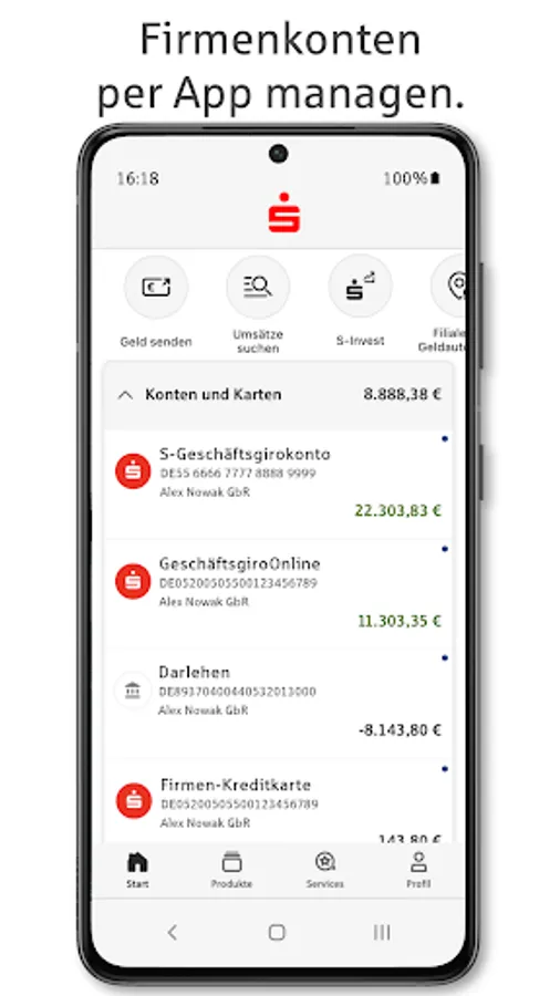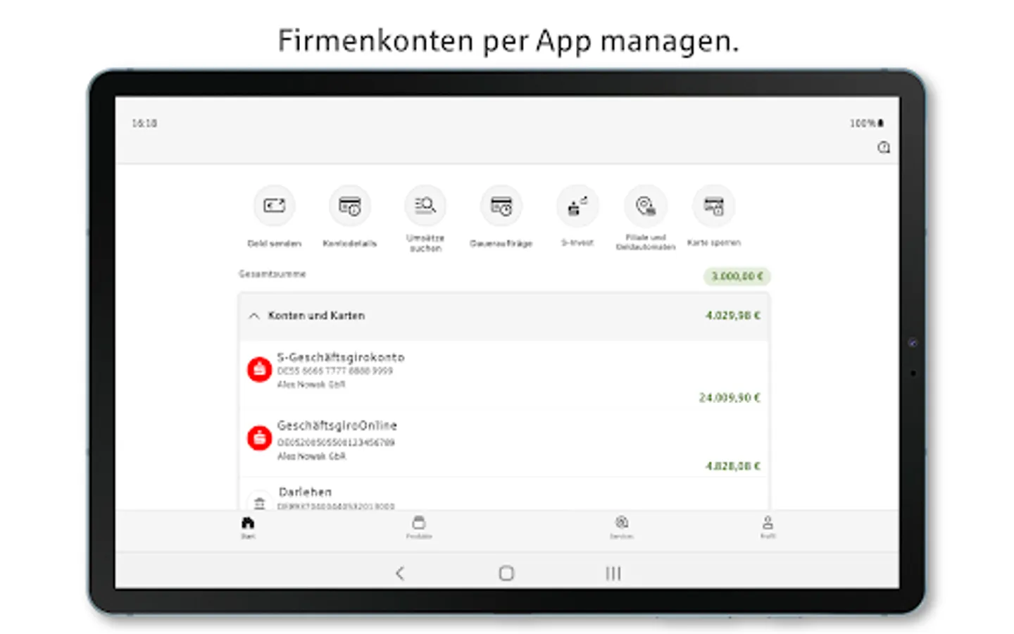 • Get an overview of your company accounts - whether at the Sparkasse or another bank (multi-bank capability)