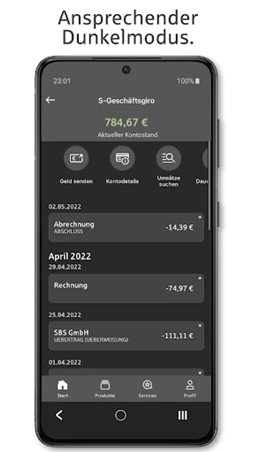 Use the search function across accounts and bank details, set up offline accounts for budget planning and view graphical evaluations of your finances. You have a direct line to your savings bank via app and access to many services such as card blocking, notifications, notepads or appointments in the S corporate customer portal. On top of that, you can switch directly to the S-Invest app and conduct securities transactions.