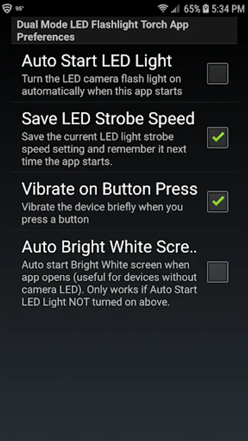 4. Bright White screen (automatic maximum brightness) for devices that do not have an LED light.