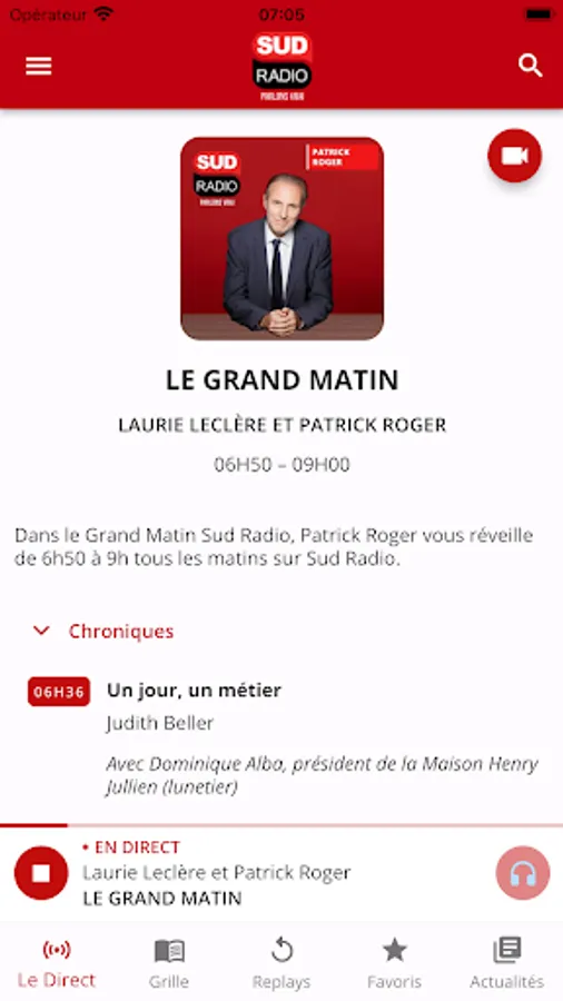 With the Sud Radio application, find live radio and video and re-listen, whenever you want, to your favorite programs on your iPhone and iPad in high definition with Jean-Jacques Bourdin, Brigitte Lahaie, Cécile de Ménibus, André Bercoff , Valérie Expert, Patrick Roger and all the station's journalists and presenters.