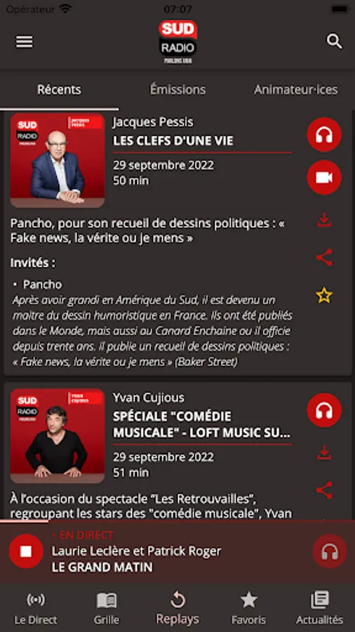 Listen to your favorite podcasts, follow the news in real time as well as all the best moments of the antenna live and in replay.
