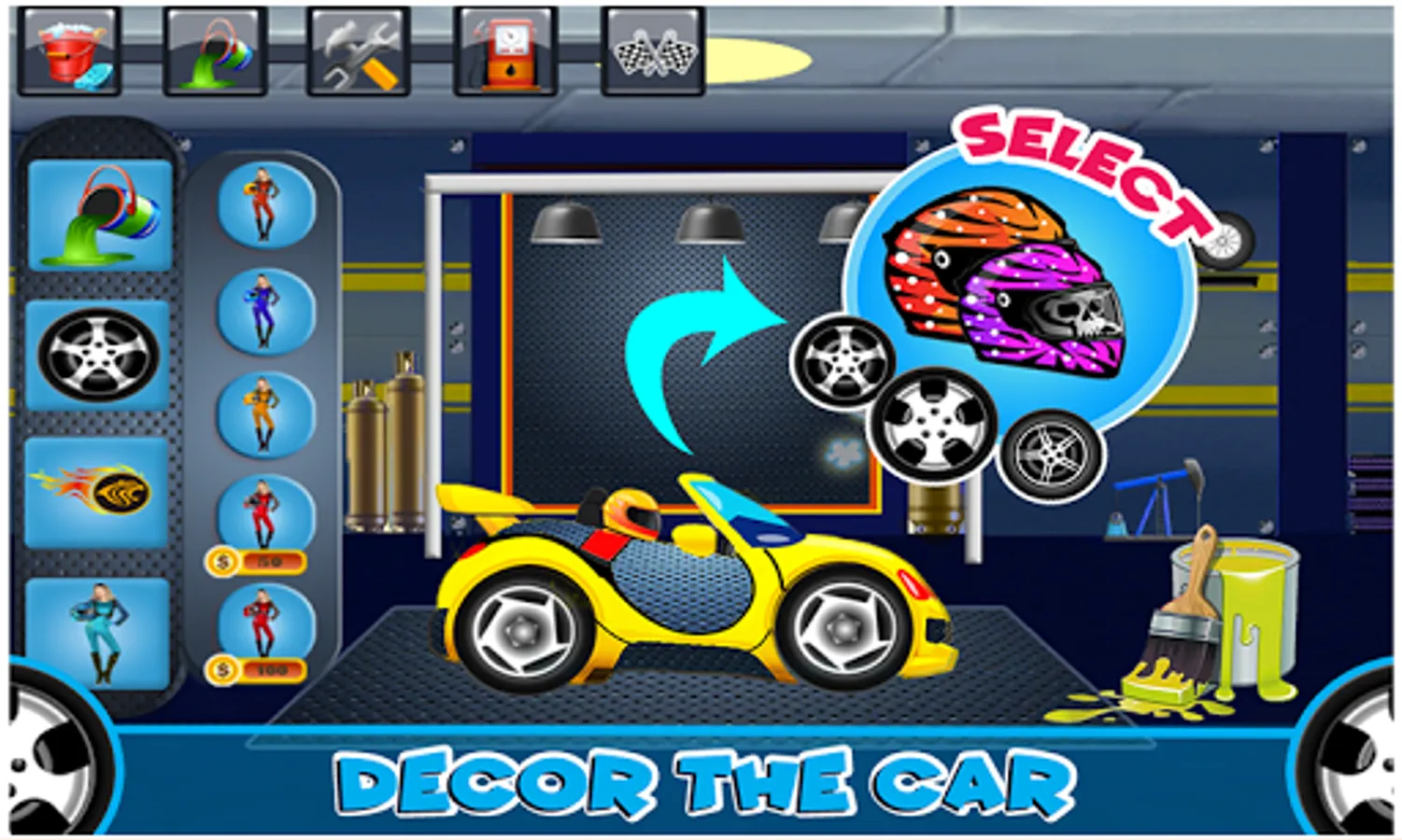 It's a build crazy car: design & style game fill with fun and entertainment. Drive your own crazy car after car customization and design in this car wash and repair games. Before going to the track, care for your sports car with professional car maker, auto mechanic and tuning tools. Car Wash, repair and full the tank of your car with fuel for the big race and jumping stunts. Earn coins as you play, upgrade and customize your car styling to perform better on the track of car mechanic simulator games.