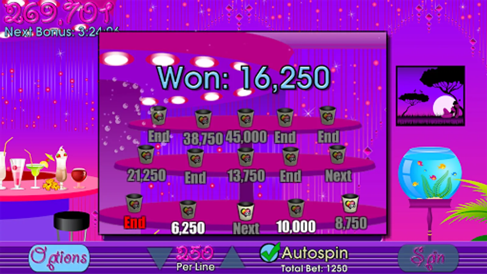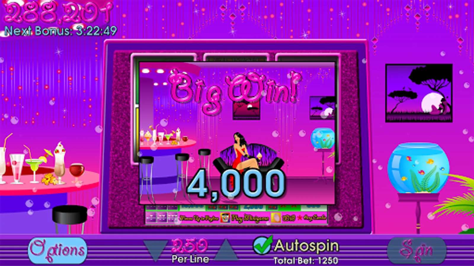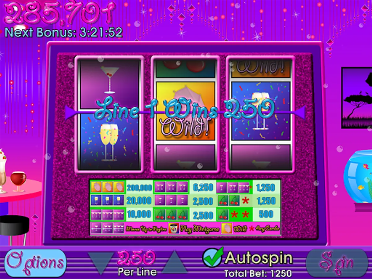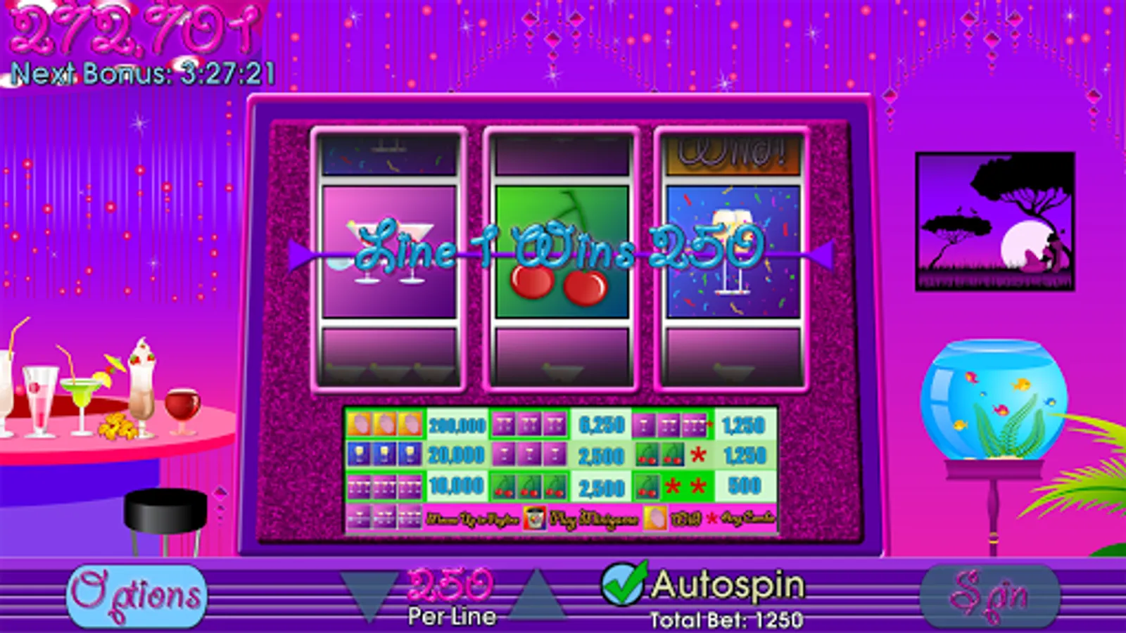 Cocktail slots has exciting three reel, five pay line slot action like you would find in a casino. Bright colorful graphics, high quality sound, and a fun mini-game.