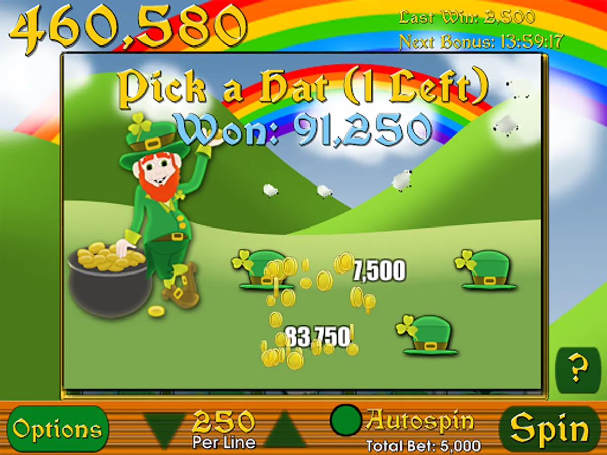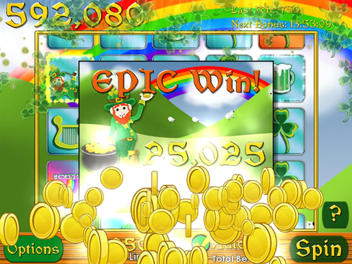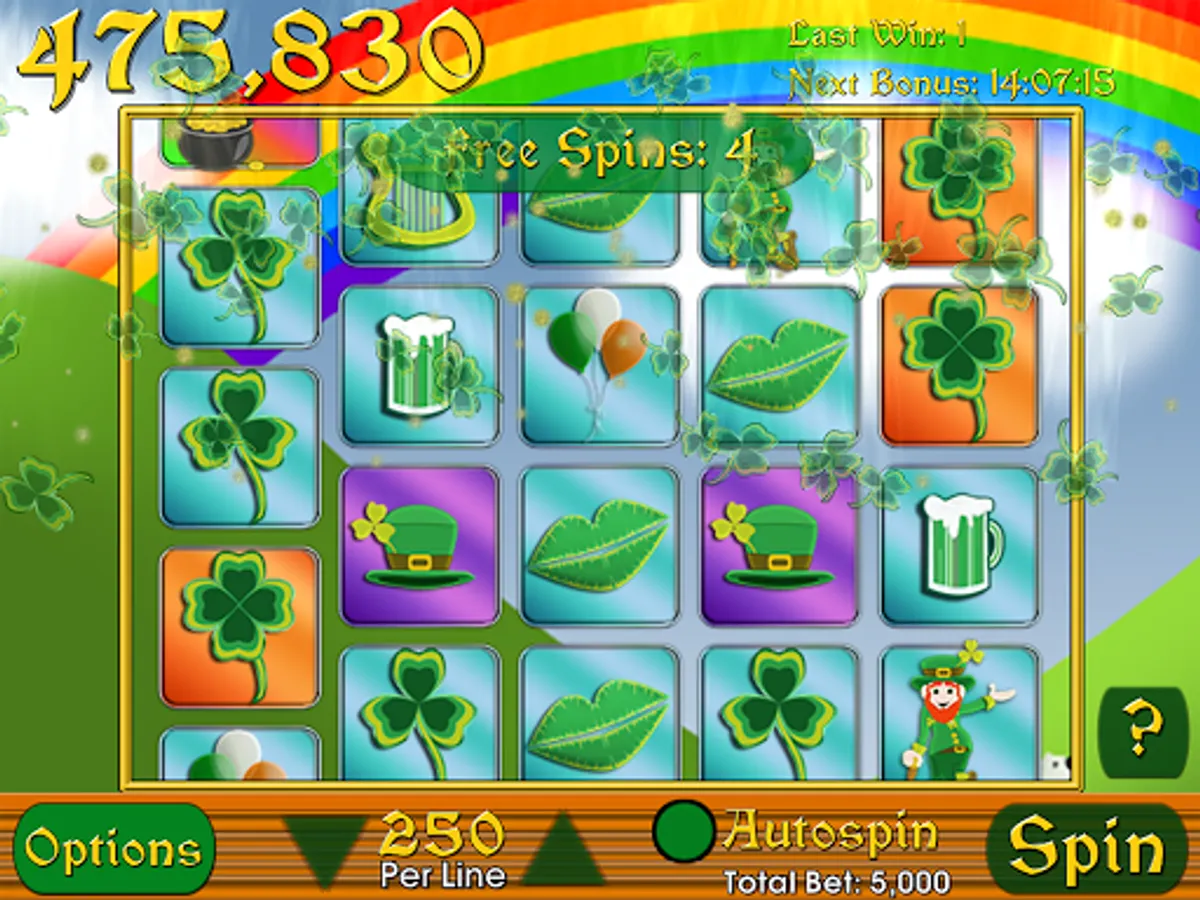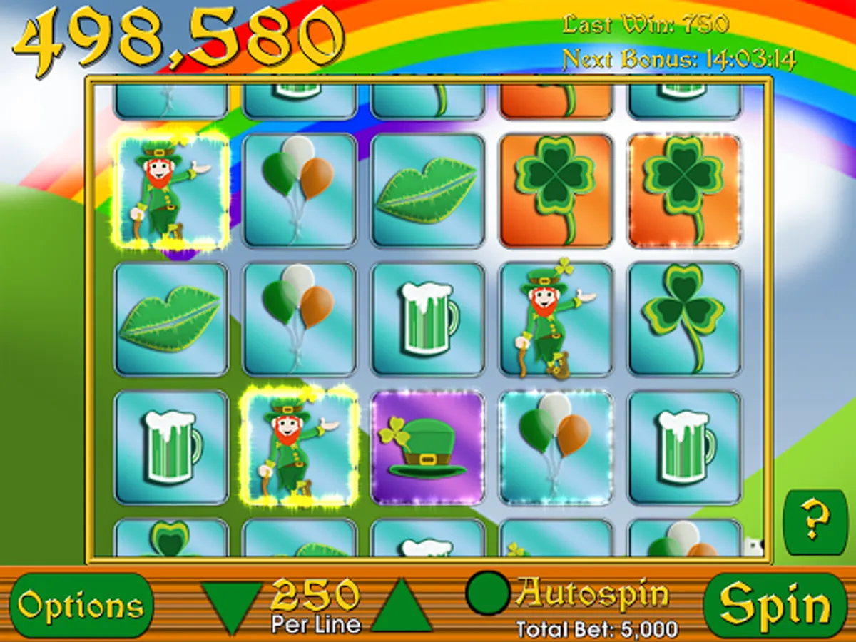 Get lucky for St. Patrick’s Day or any day you feel a need for a little Irish luck. Shamrock Slots is a five reel Video Slots game! Find pots of gold and win free spins. A four leaf clover is a lucky find that matches other symbols. Get three hats and play the Leprechaun's gold mini-game.