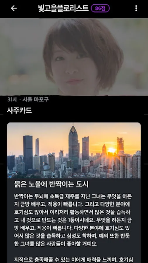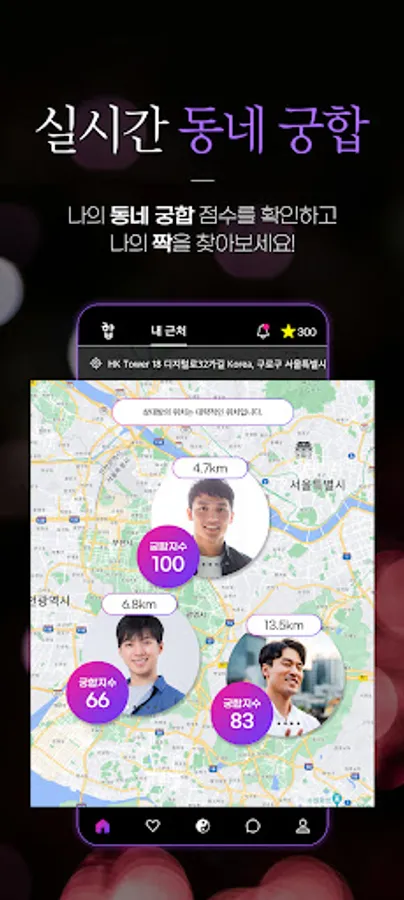 The best compatibility is based on all age groups and the whole country, but you can't see the compatibility for the whole country, right? If you set the age range and region you want, you can receive recommendations with high affinity scores within that range! Start a fun friendship with a new meeting full of chemistry with the filtering function of compatibility dating.