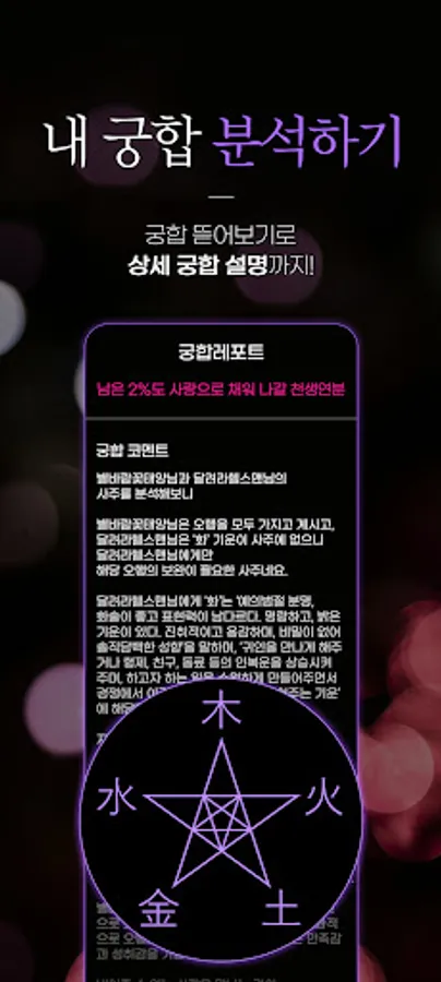 - You can see the compatibility score with the opposite sex as well as detailed compatibility descriptions.