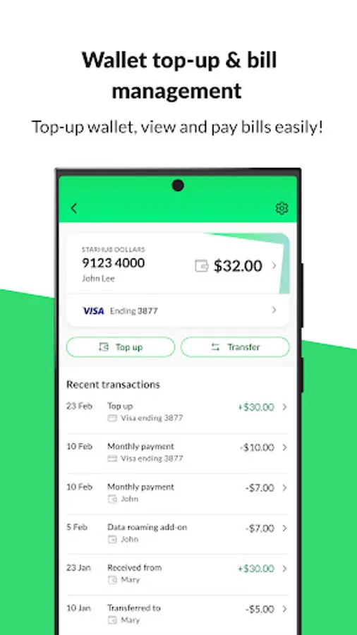- Safe, simple, and swift in-app payments and top-up of your StarHub Wallet