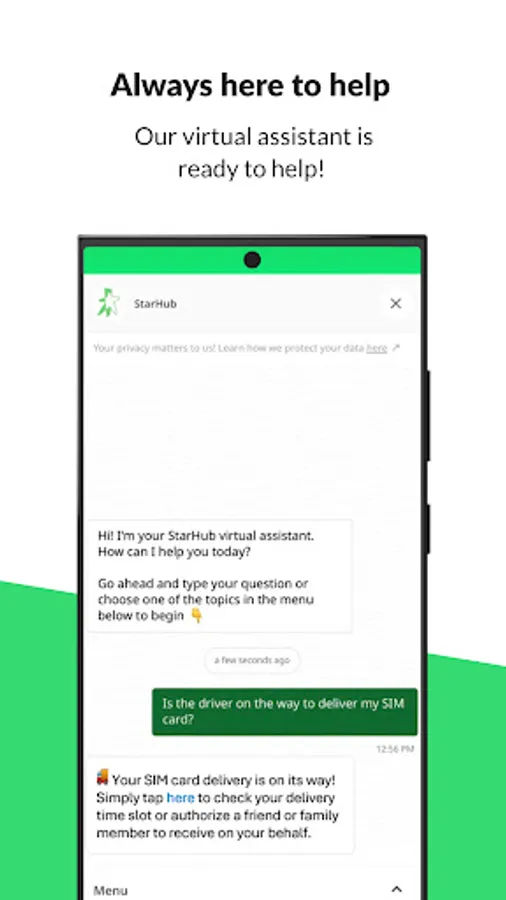 With the Starhub App, activate & manage your services, pay bills, discover and buy personalised offers and enjoy daily rewards all in one place! Simplify your digital life with our 24/7 virtual assistant and rest easy knowing you’re in safe hands!