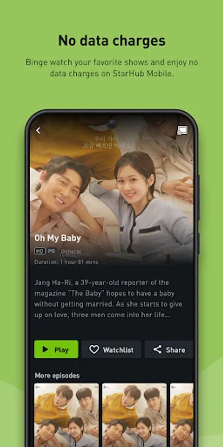 • No data charges - StarHub Mobile postpaid customers will enjoy no data charges when you stream on StarHub TV+ app.