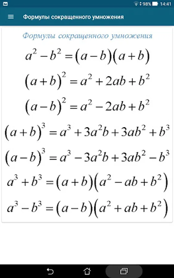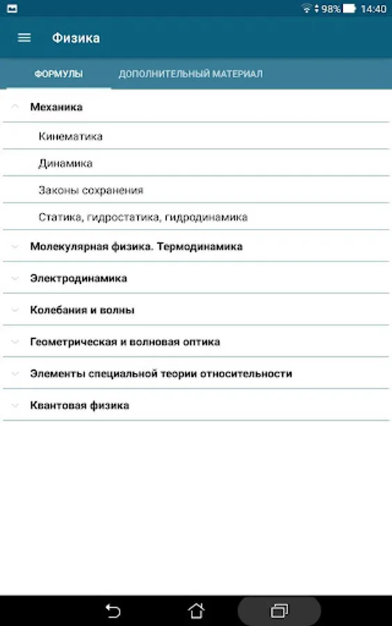 The app will continue to receive updates with improved functionality, adding formulas, and reference material. With the app "Formula. Student Directory" to find the right formula and the material easier and faster.