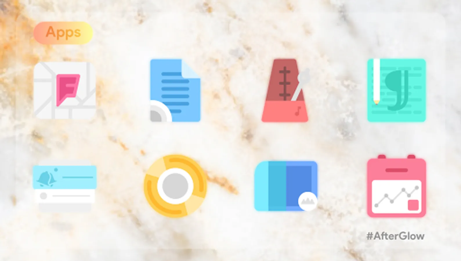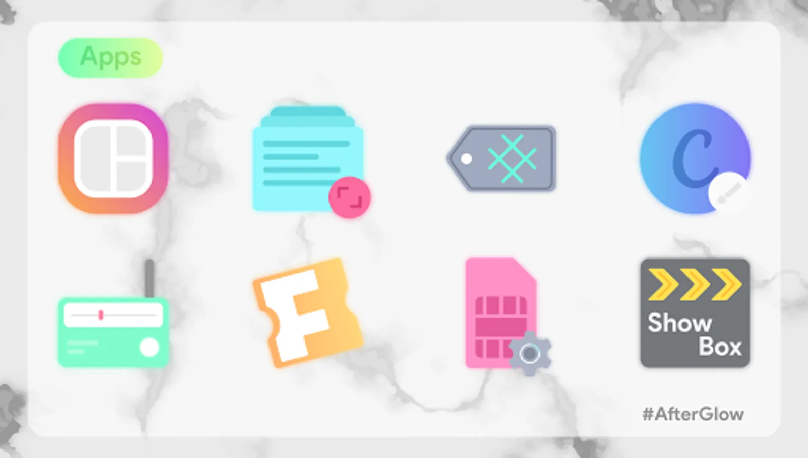 Afterglow combines pastel colors along with heightened vibrance which will give you a pleasant color palette! Along with that, each icon has a glow behind it to give your phone a unique look!