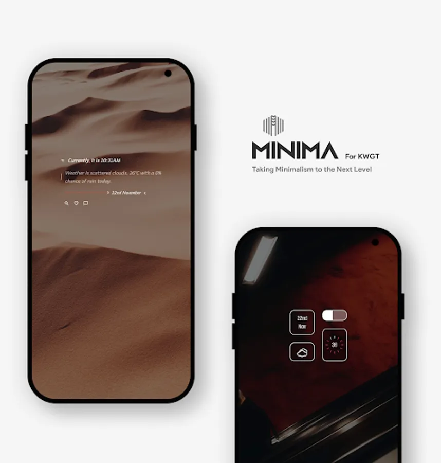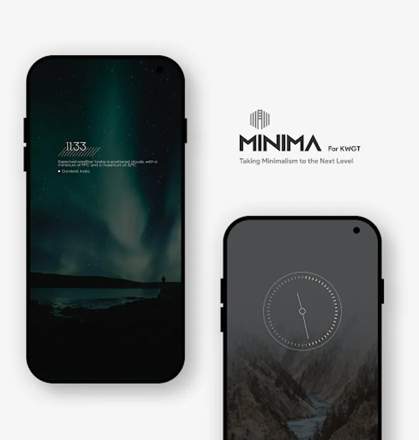 Take Minimalism to the Next Level with these amazing set of Widgets! In today's world, it's often said that LESS IS MORE, and that is exactly what you will get with the widgets in MINIMA! The widgets will give you all the information you need in an eye pleasing manner without clutter!