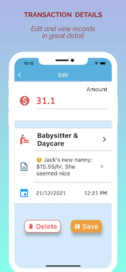 Add new transactions extremely fast. It's done with just a single click, as you don't need to fill in anything other than an amount.