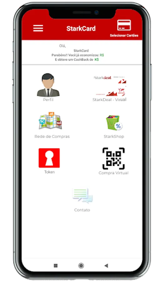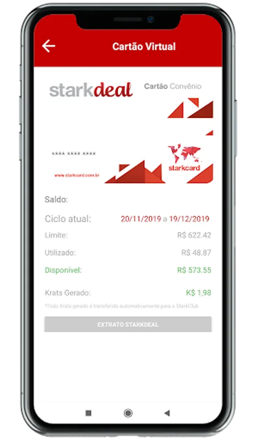 Allows access to extracts of his cards and Krats gains, still allows access to regional shopping guides, national and special offers, as well as the location of StarkCard and contact.